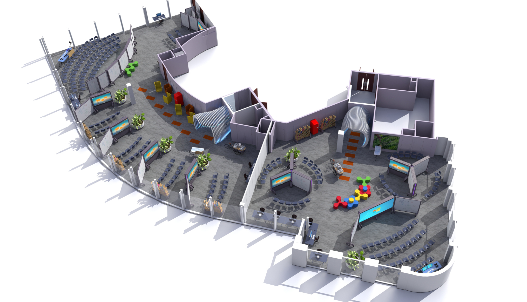 Detailed drawing information is produced from the 3d models and initial furniture and materials specifications are produced. Cost reporting is generated from this information. Usually for exhibition projects this level of detail is all that is required.
